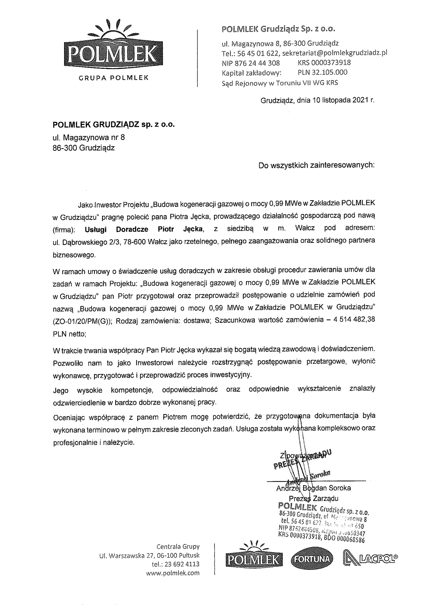 Referencje Polmlek Grudziądz