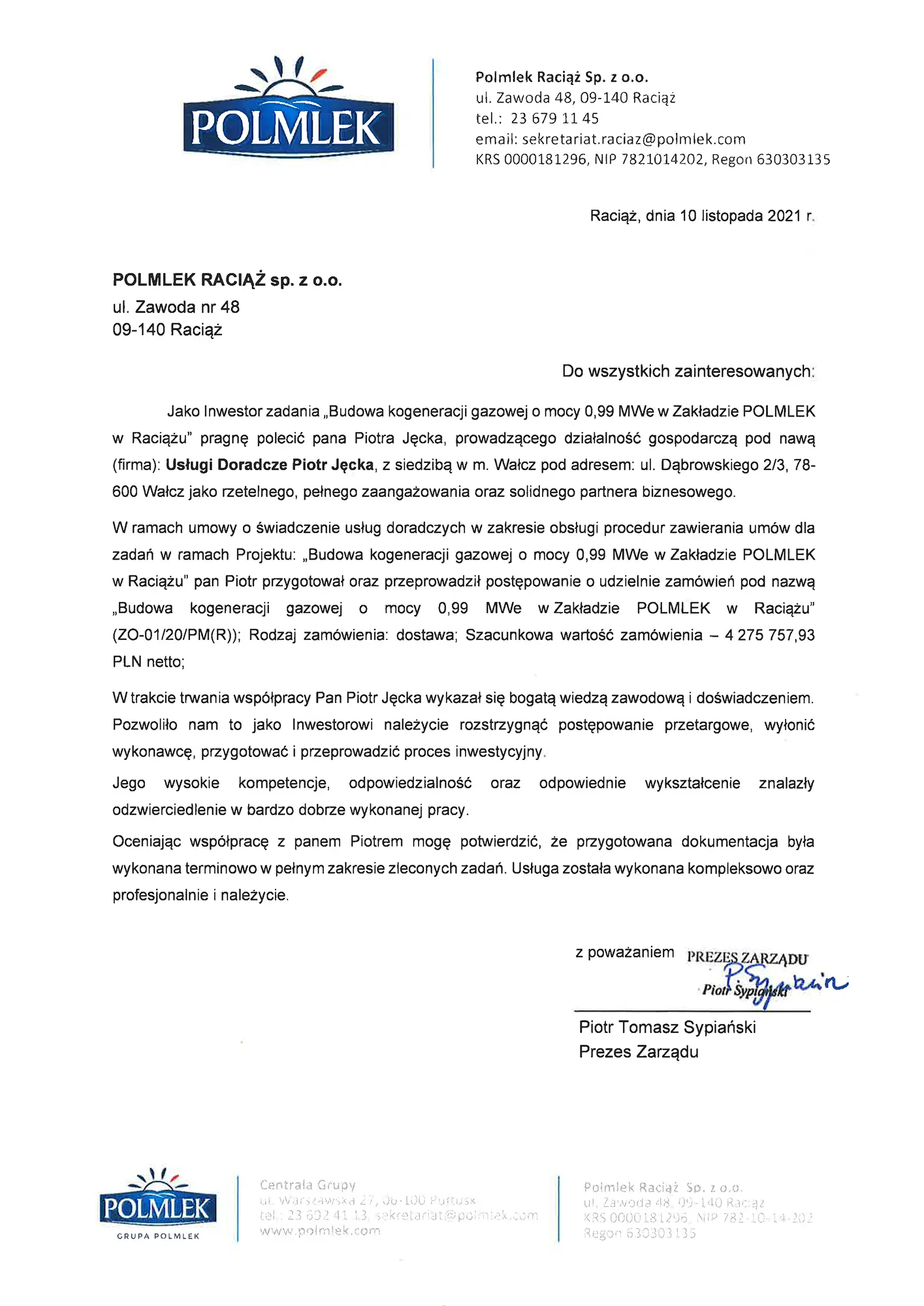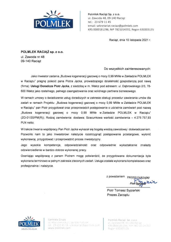 Referencje Polmlek Raciąż