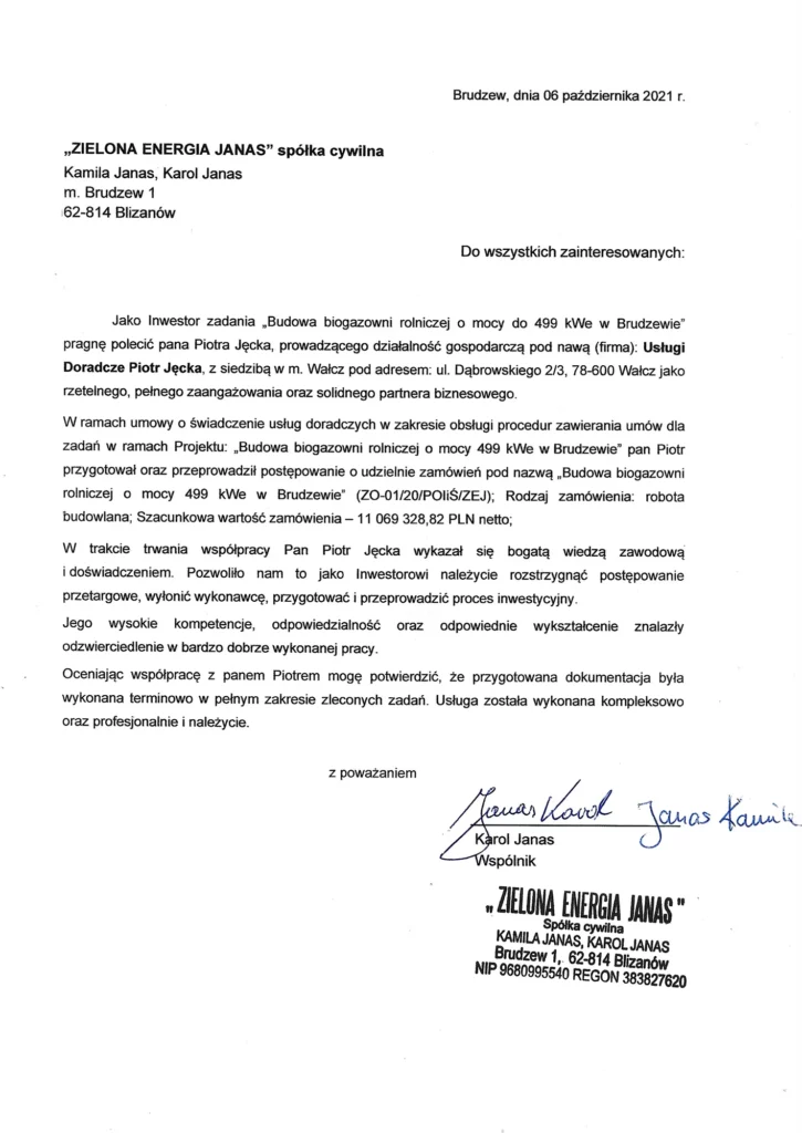 Referencje Zielona Energia Janas